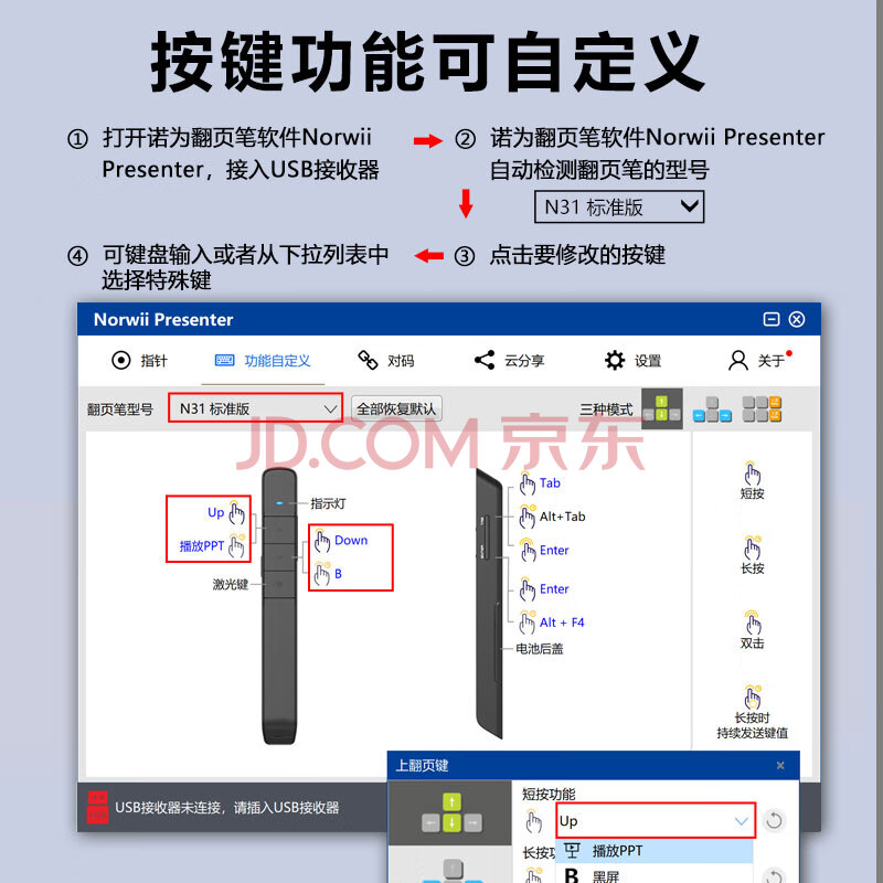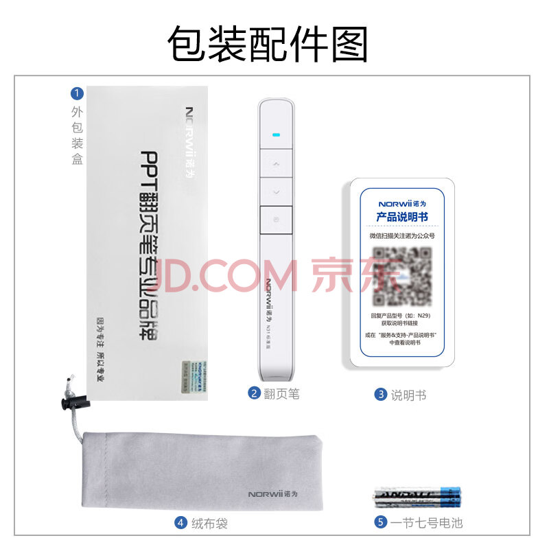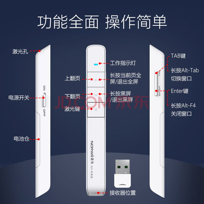 商品相册:诺为 PPT遥控笔 100米遥控翻页笔教师用 激光笔翻页器 投影笔 无线演示器 激光笔 N31 标准版 白色第