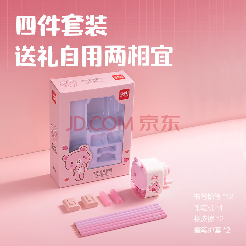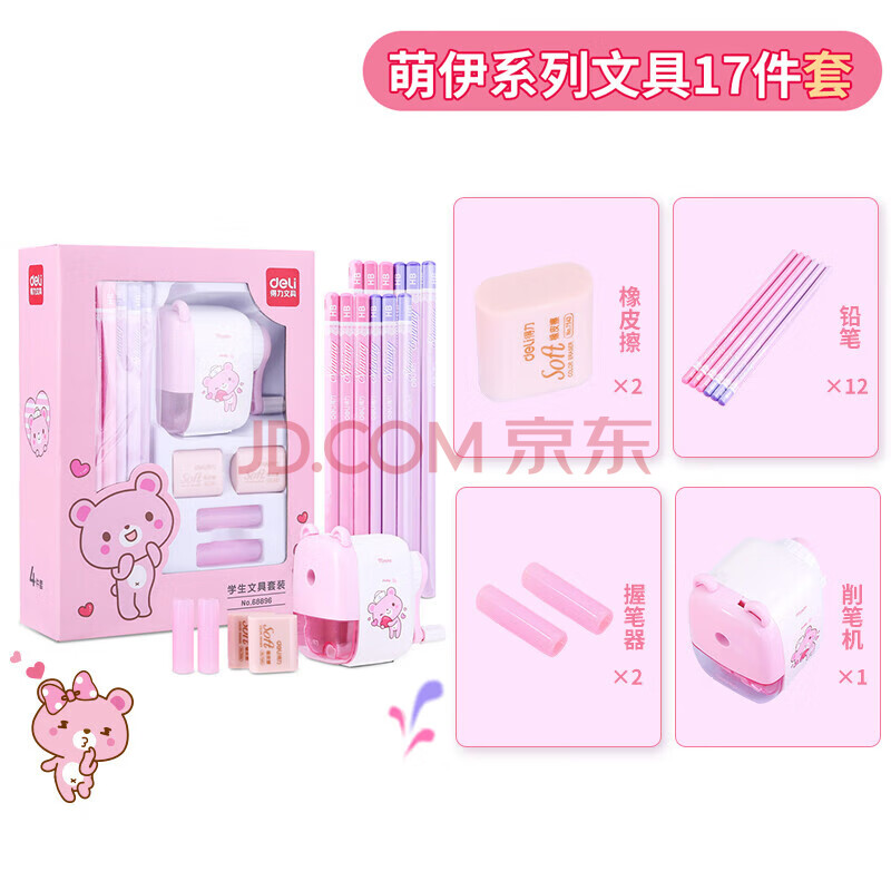 商品相册:得力(deli)萌伊系列学生文具礼盒套装1-2年级铅笔卷笔刀橡皮握笔器精美伴手礼开学文具生日礼物考试用品17件第1张/共5