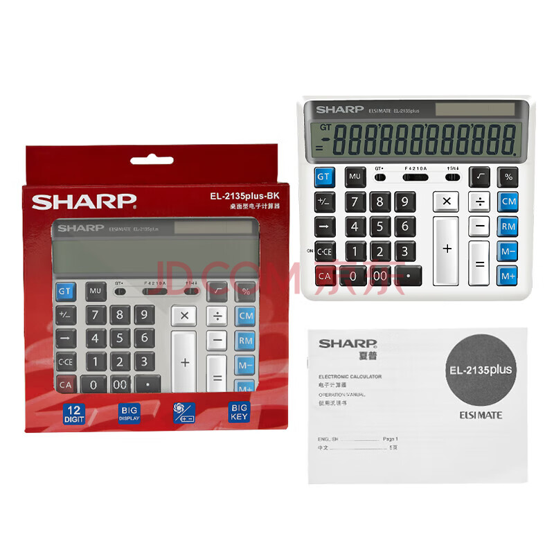 商品相册:夏普(SHARP) EL-2135 Plus 灰色太阳能双电源计算器 财务会计专用大屏幕计算机器 办公用品 2135升级版第