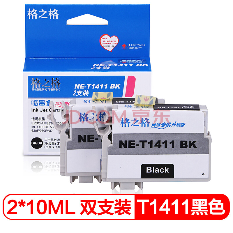 商品相册:格之格T1411黑色墨盒NE-T1411BK 2支装适用爱普生ME33 ME330 ME35 ME350 ME535 ME85 ME560 ME620打印机墨盒第
