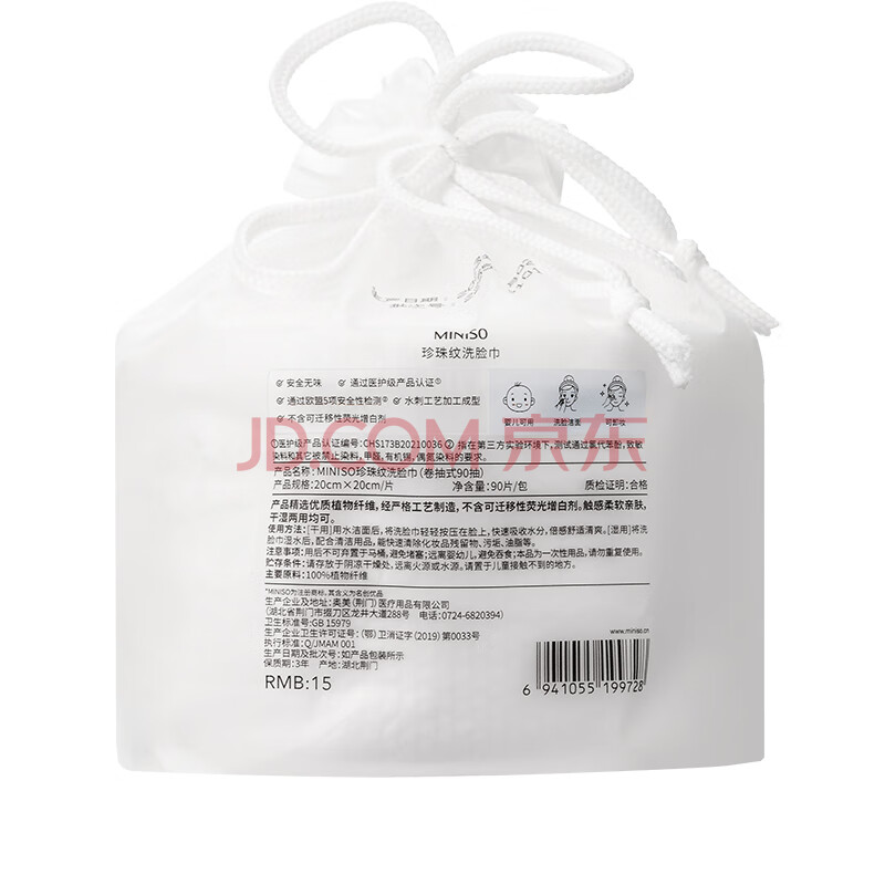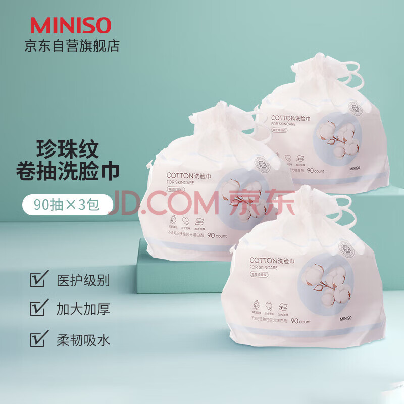 商品相册:名创优品(MINISO)洗脸巾一次性卷抽式双效珍珠纹纤维柔巾洗面巾洁面巾90抽*3卷第