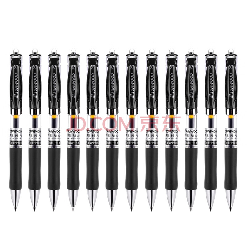 商品相册:三木(SUNWOOD)效率王系列 中性笔签字笔 0.5mm子弹头经典办公按动笔水笔 黑色 12支/盒 P5第