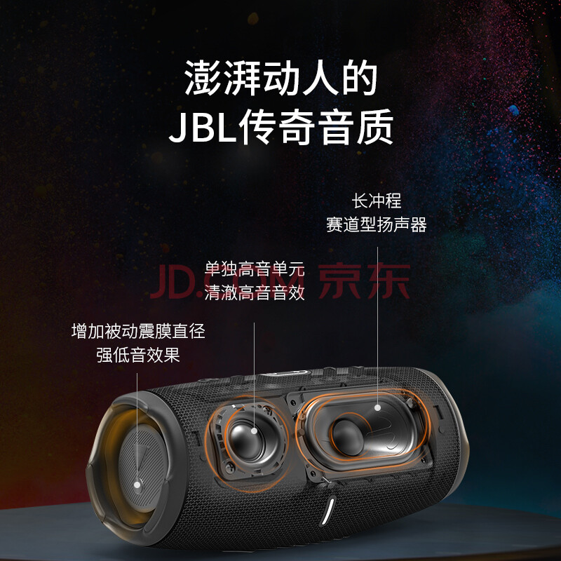 商品相册:JBL CHARGE5 冲击波五代 便携蓝牙音箱+低音炮 户外防水音响 增强版赛道扬声器 女生礼物 红色第