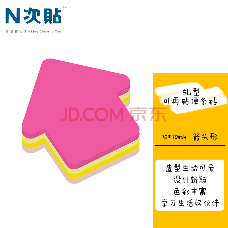 商品相册:N次贴(STICKN)160张4色可爱造型便利贴异形便签纸百事贴记事贴70*70mm 箭头形33028第