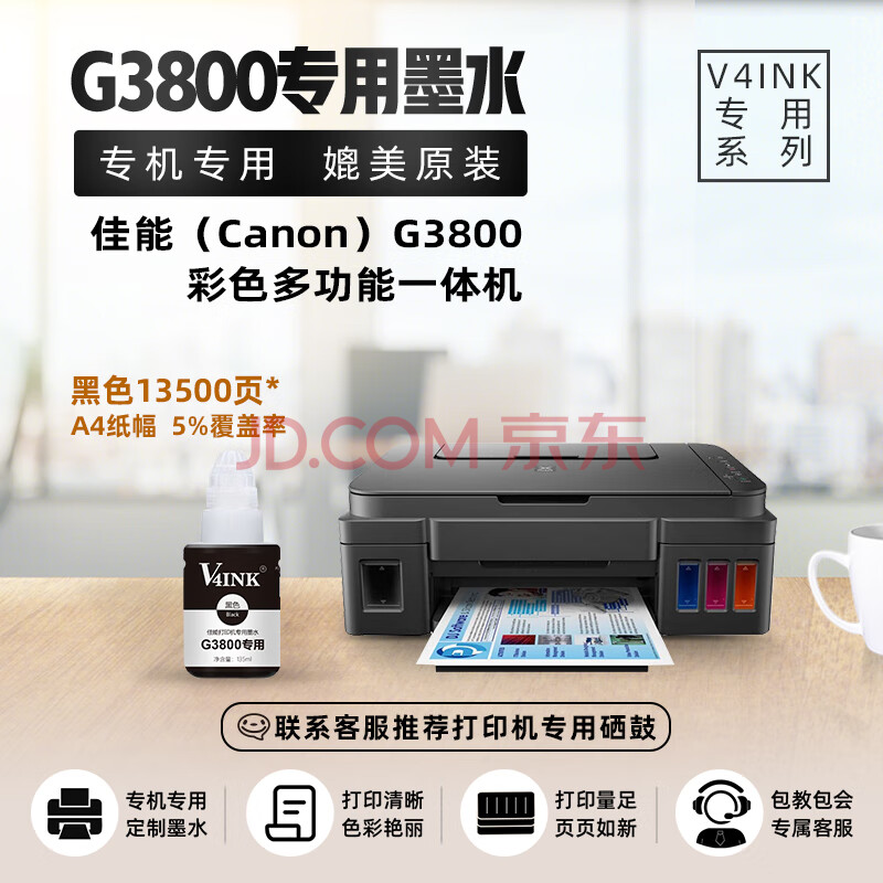 商品相册:V4INK适用佳能g2800墨水890墨水黑色BK(佳能g3800墨水g3812打印机g2810 g1810 g3810 g1800墨水)135ml/支第