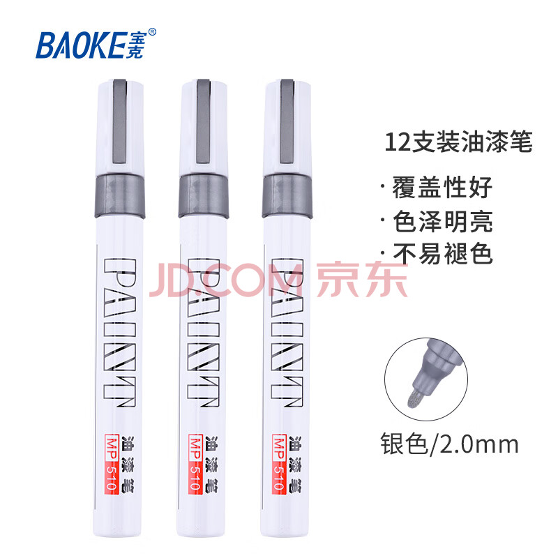 商品相册:宝克(BAOKE)MP510 银色油性油漆笔 签名笔签到笔记号笔涂鸦笔 12支/盒第