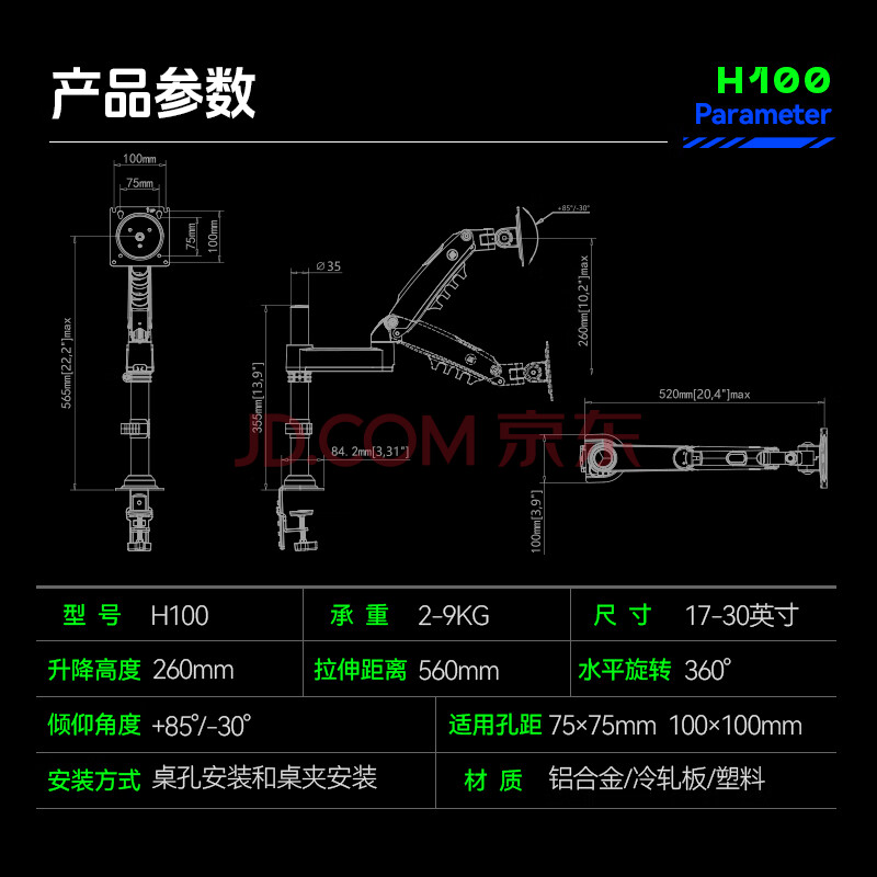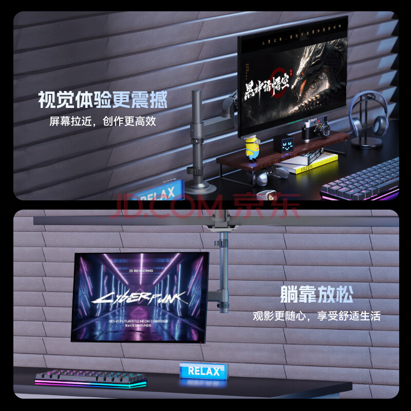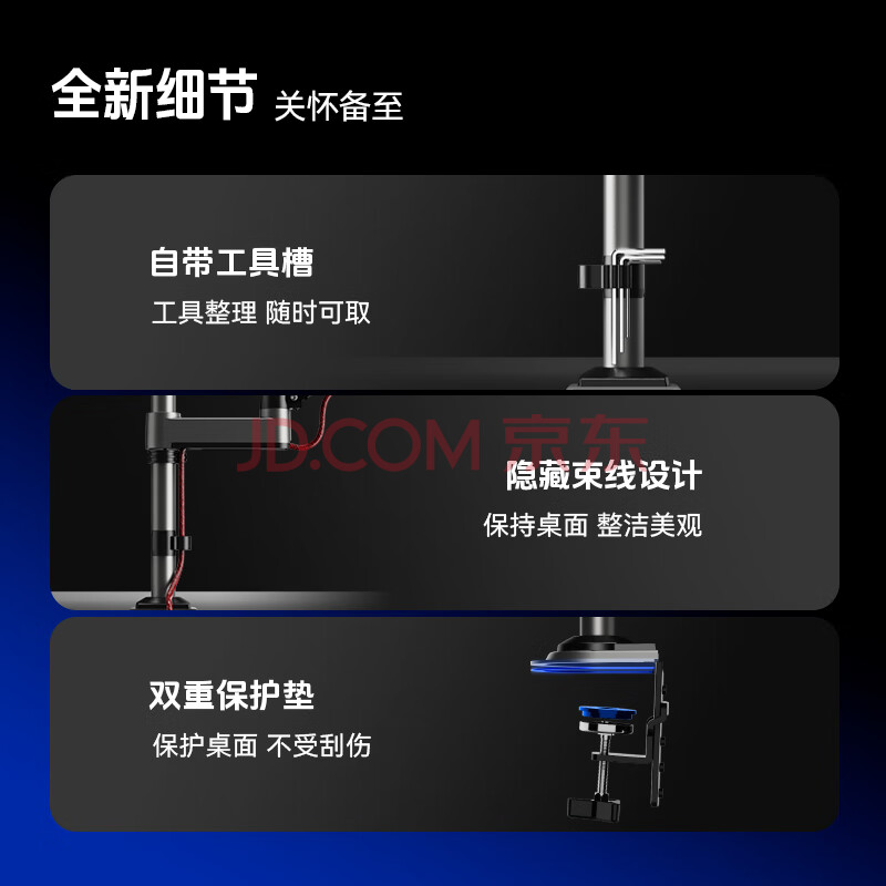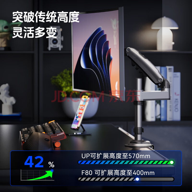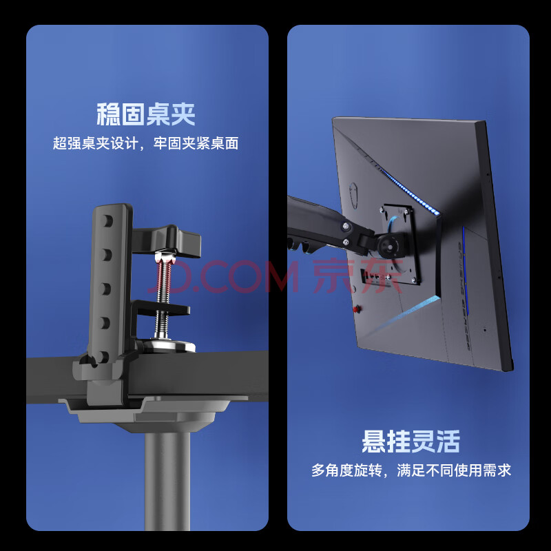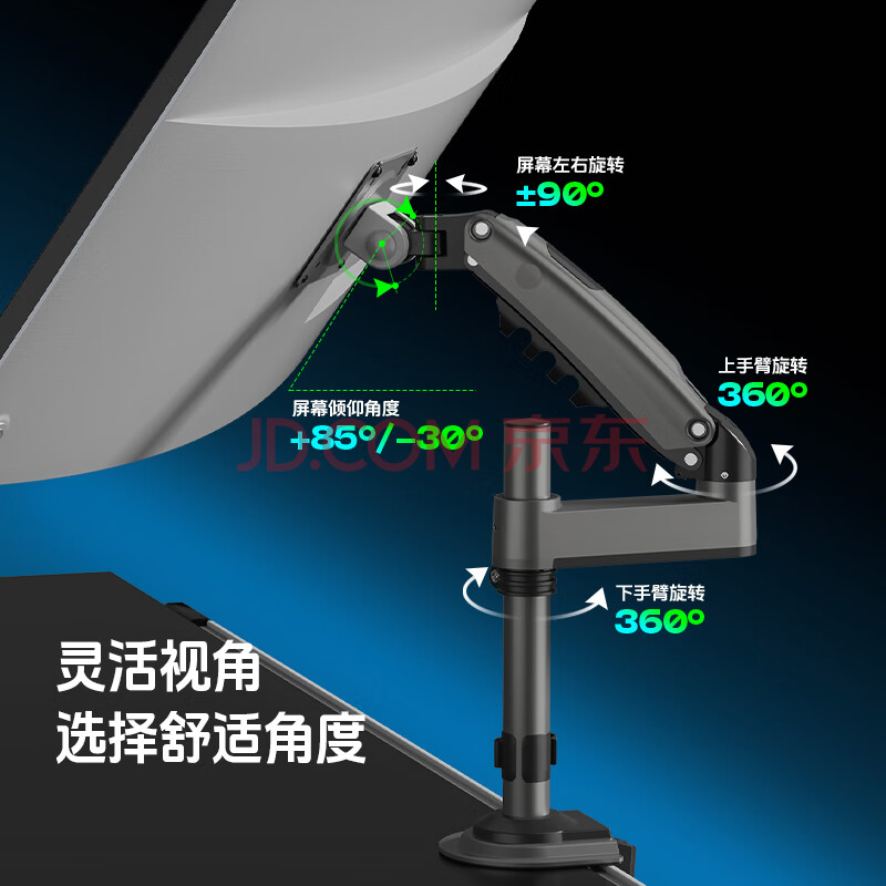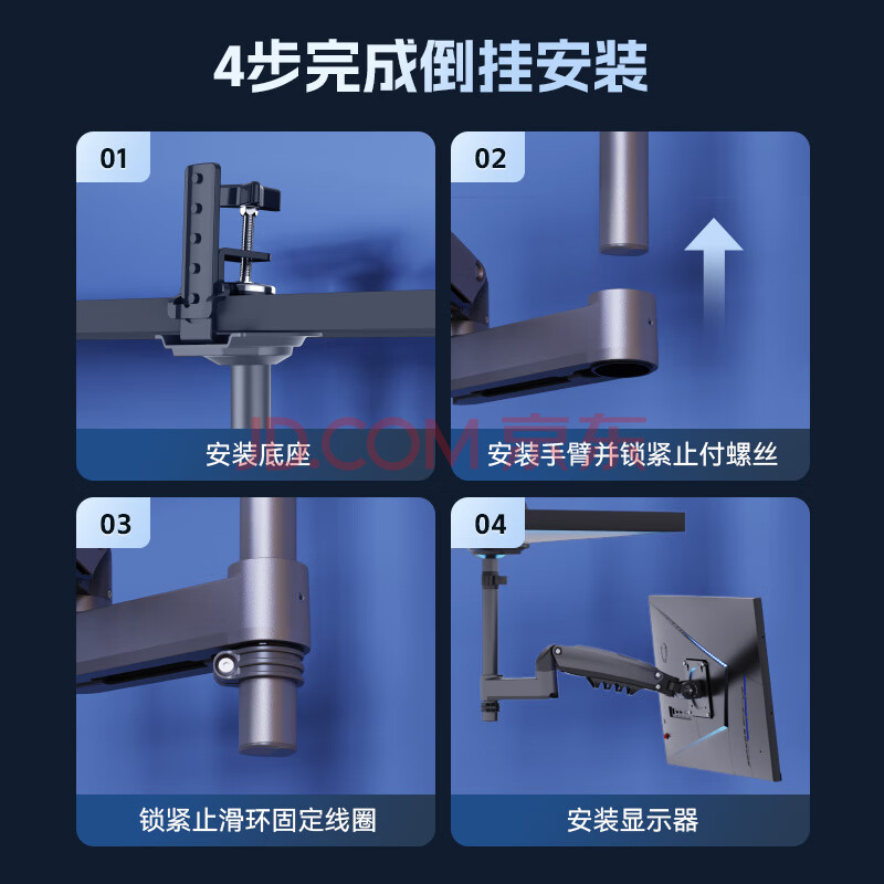 商品相册:NBH100显示器支架倒挂机械臂 电脑支架桌面夹式底座倒装屏幕升降臂17-32吋宿舍悬空托架适配卓威电竞第