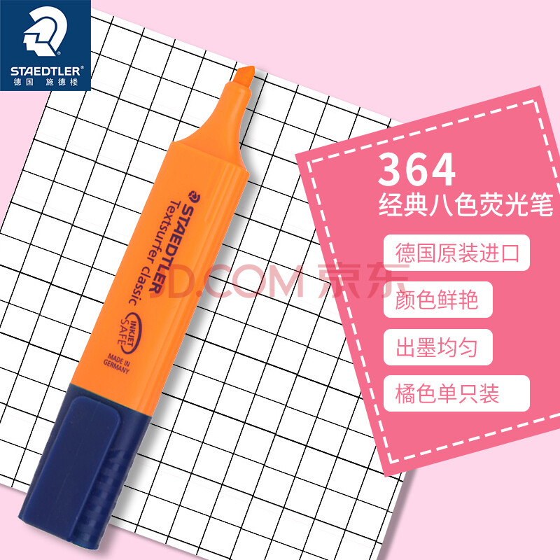 商品相册:施德楼(STAEDTLER)荧光笔 1+5mm学生考试划重点办公标记号笔 儿童手抄报绘画手账笔开学必备用品 橘色364-4第