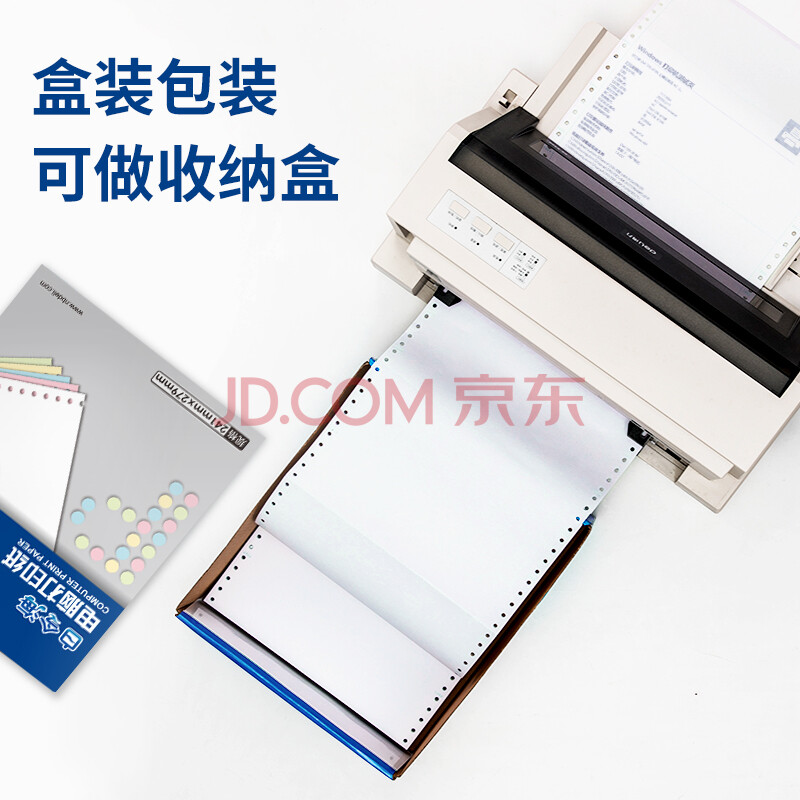 商品相册:得力(deli)【缺页十倍赔】白令海四联三等分可撕边针式电脑打印纸发票 彩色(白红蓝黄)1000页/箱241-4-1/3CS第