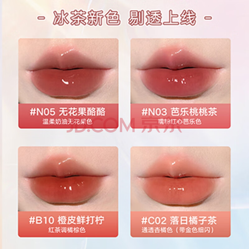商品相册:橘朵(Judydoll)冰茶镜面唇釉精华口红护唇不易沾杯送女友礼物N01白桃轻乳茶第