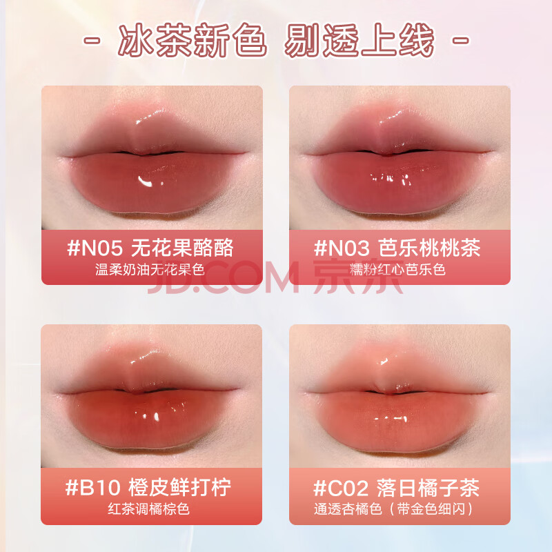 商品相册:橘朵(Judydoll)冰茶镜面唇釉精华口红护唇不易沾杯送女友礼物N03芭乐桃桃茶第
