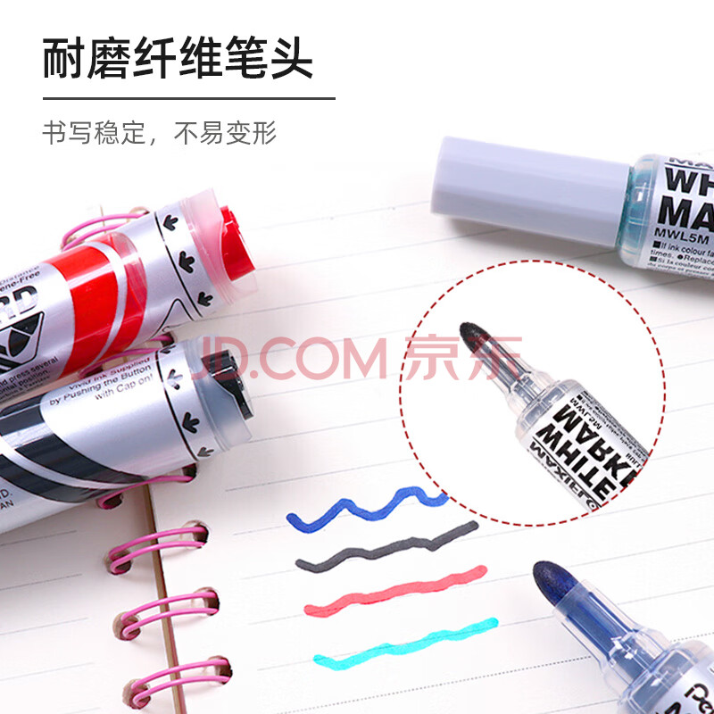 商品相册:派通(Pentel )白板记号笔 2mm直液式粗字圆头 可擦马克笔进口 MWL5M 黑色(5支装)第