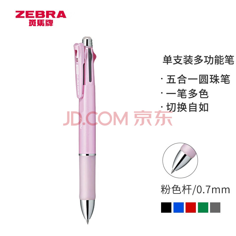 商品相册:斑马牌(ZEBRA)五合一多色笔(0.7mm四色圆珠笔+0.5mm自动铅笔)黑蓝红绿学生商务办公签字笔B4SA3 粉色杆第