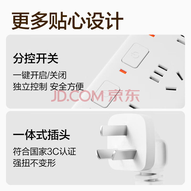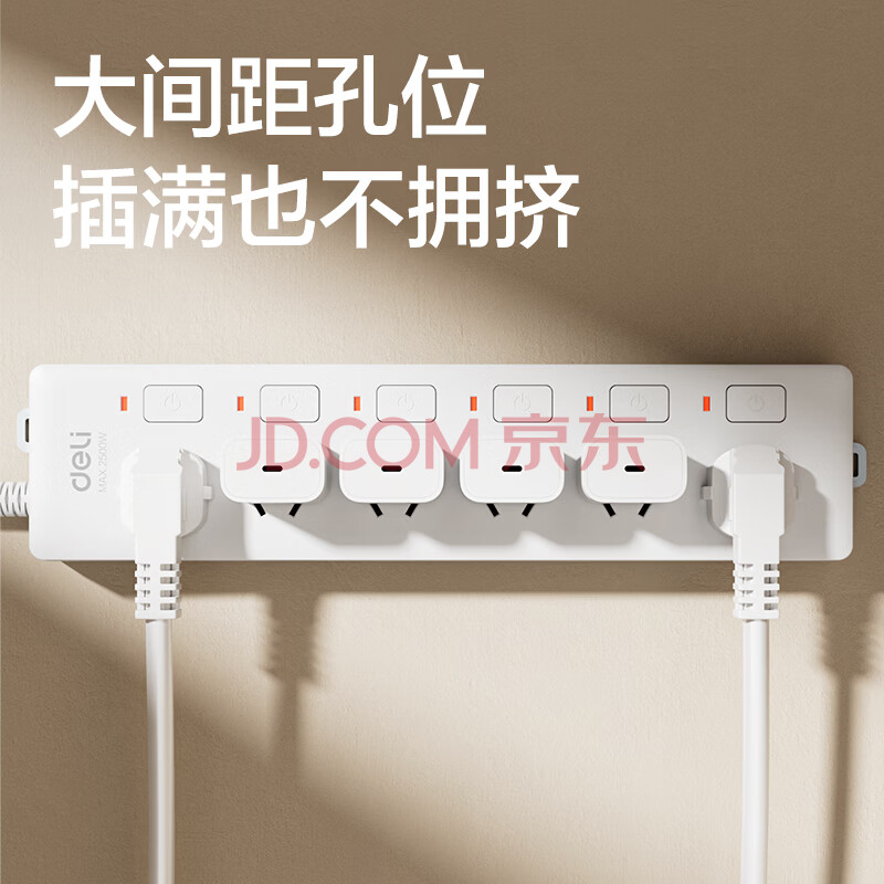 商品相册:得力(deli)3C认证国标分控插座/插排/插线板/排插/接线板 儿童保护门 6位独立开关 全长2米 3980(02)第