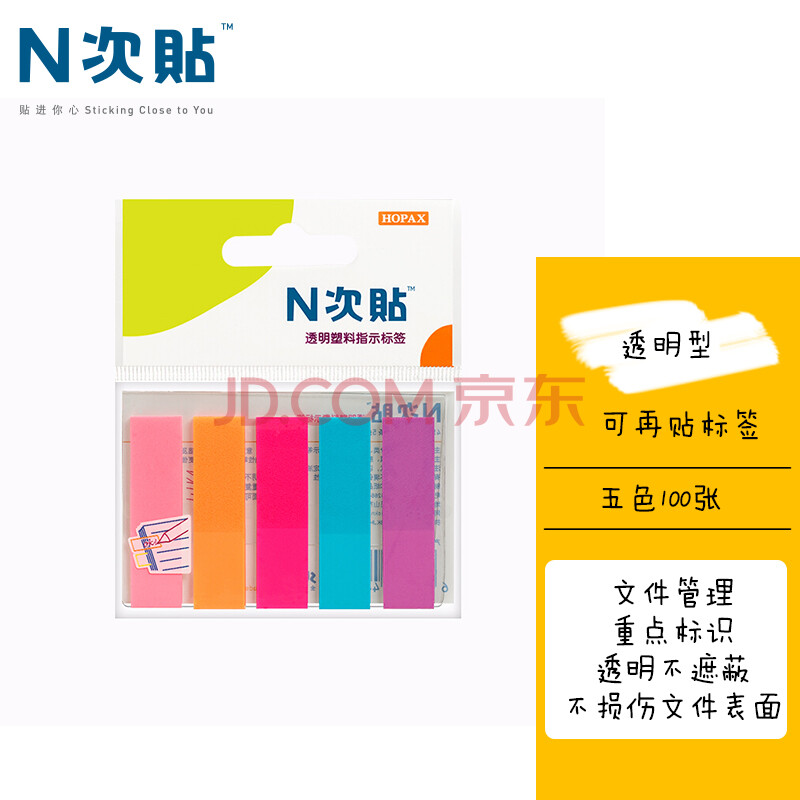 商品相册:N次贴(STICKN) 100张5色荧光膜指示标签贴45*12mm分类索引便利贴记事贴34031第