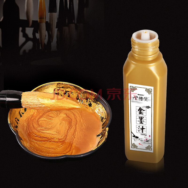 商品相册:【全网低价,真便宜直播间】暴享 宝楿堂【金色墨汁】春联纸描金边毛笔金粉墨水100ml 新春节结婚乔迁开业红宣纸瓦当纸抄写经WF32第