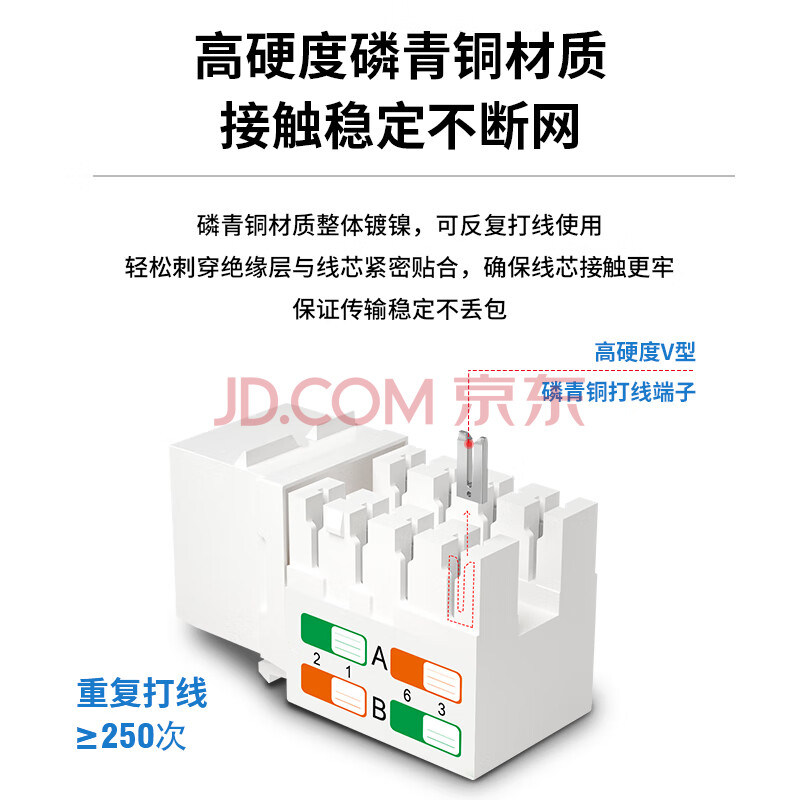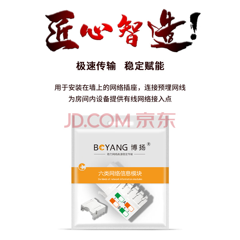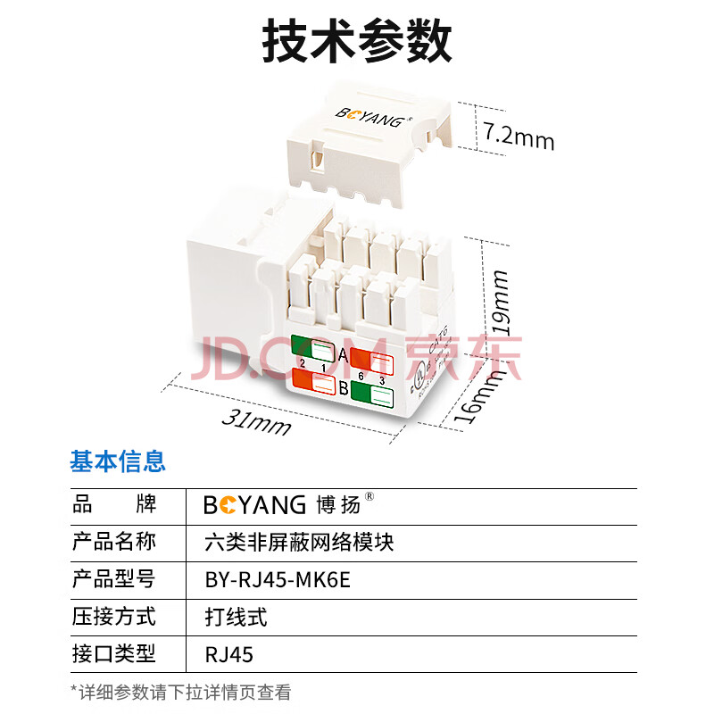 商品相册:博扬(BOYANG)六类网络模块 工程级打线式信息模块 (50μ"镀金)CAT6网线RJ45连接头 BY-RJ45-MK6E第
