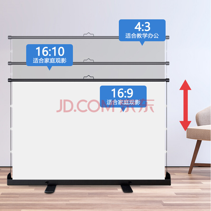 商品相册:鲸米(JINGMI)投影幕布100英寸16:9地拉幕布全面屏手动地升幕布G3拉线白玻纤家用办公户外便携移动投影仪屏幕第