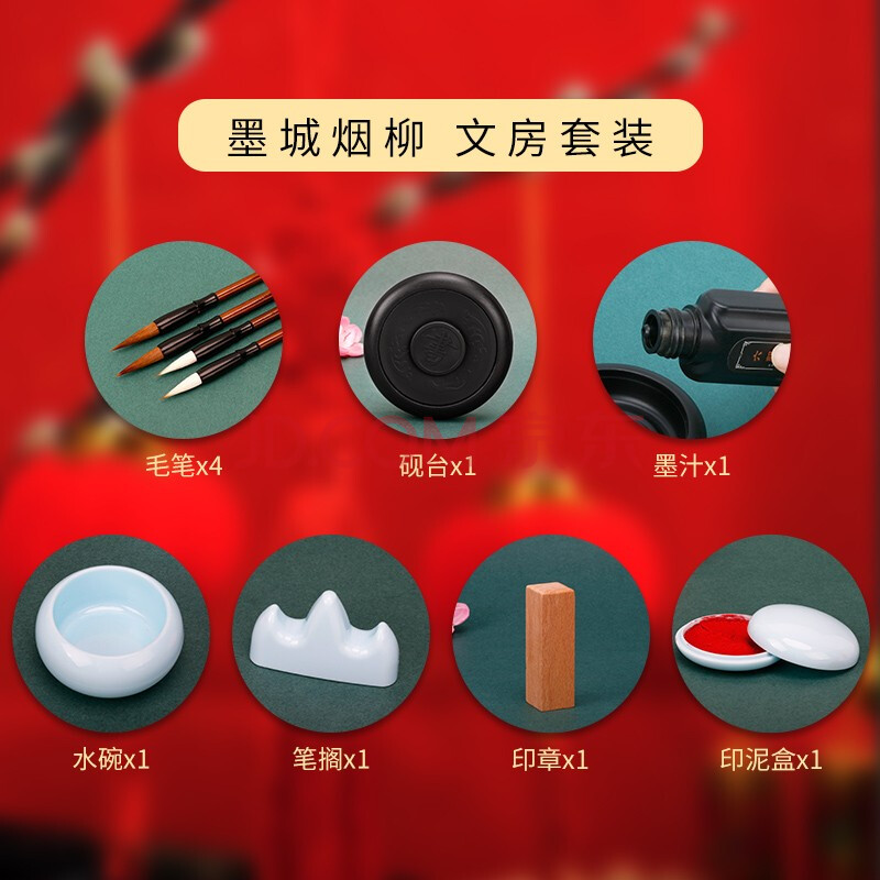 商品相册:绍泽文化 文房四宝毛笔套装10件套 毛笔/砚台/墨汁/印章/笔搁/印泥/水碗 墨城烟柳热门商品第
