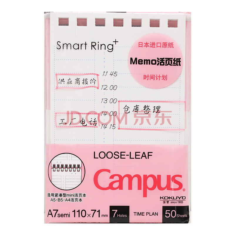 商品相册:国誉(KOKUYO)A7活页纸Campus Memo活页笔记本子替芯 时间轴 50张 1本 WSG-MEL5503第