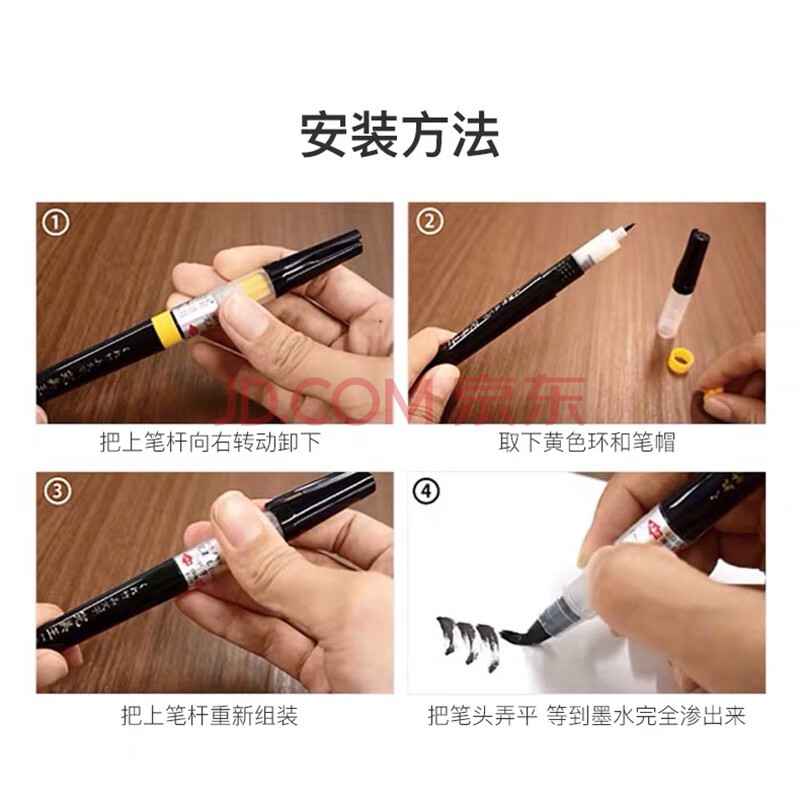 商品相册:吴竹(KURETAKE)原装进口进口科学毛笔自带墨水超大墨囊替芯(不含笔尖) 黑色中楷XOC50-10S第