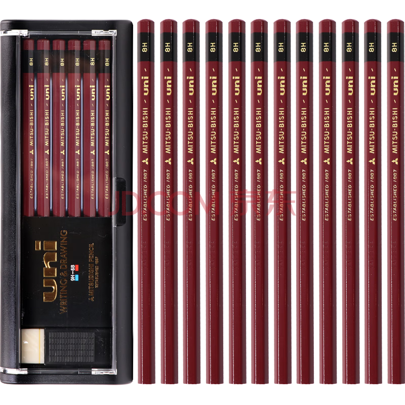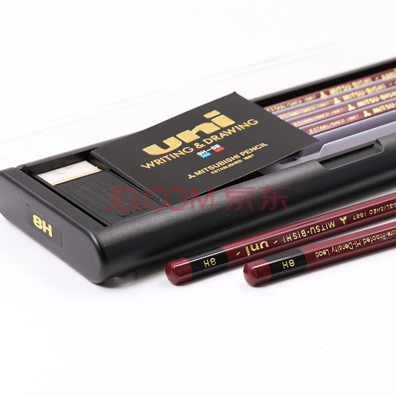 商品相册:uni三菱 金装铅笔8H 原木杆铅笔书写绘画素描设计 12支/盒(含橡皮)1887第