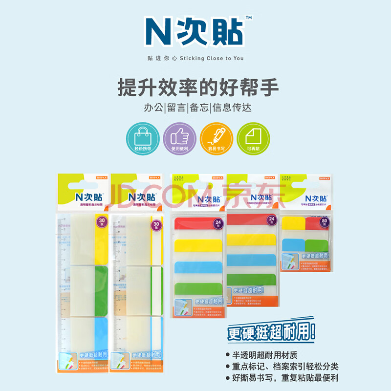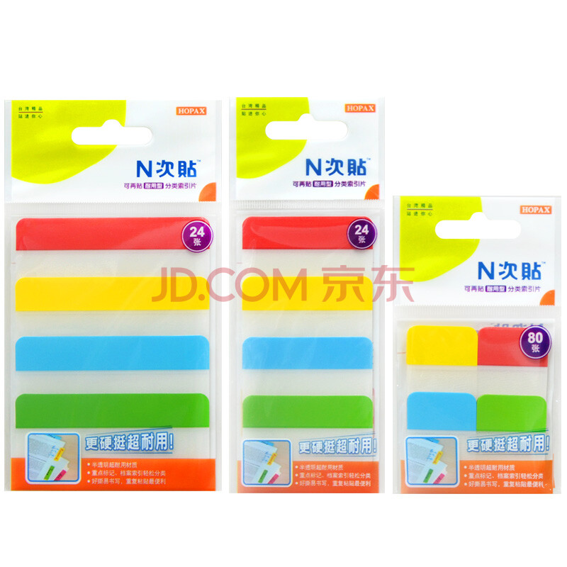 商品相册:N次贴(STICKN)荧光指示标签贴分类便签纸便利贴索引片25*38mm 耐用型80枚4色34039第