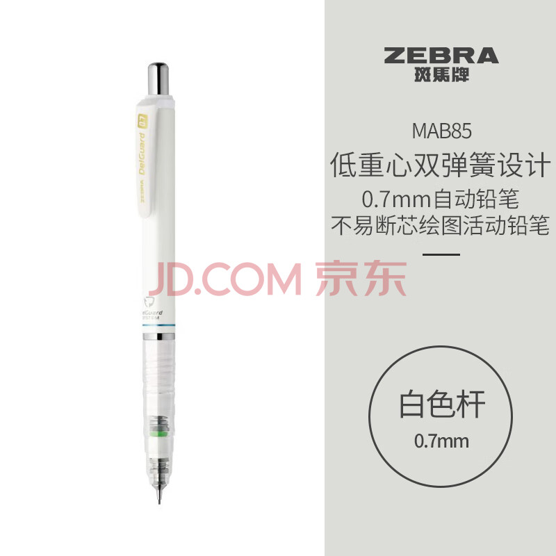 商品相册:斑马牌 (ZEBRA)0.7mm自动铅笔 不易断芯绘图活动铅笔学生用 低重心双弹簧设计 MAB85 白色杆第