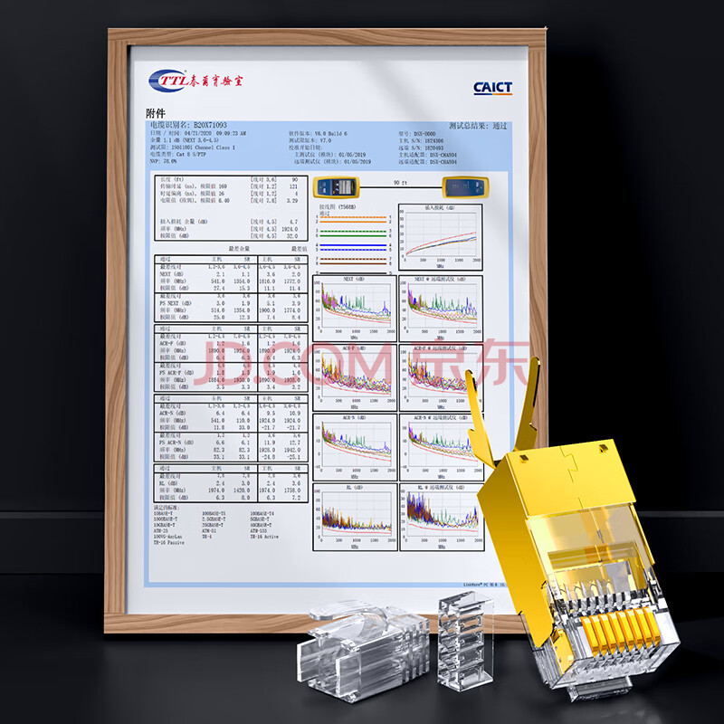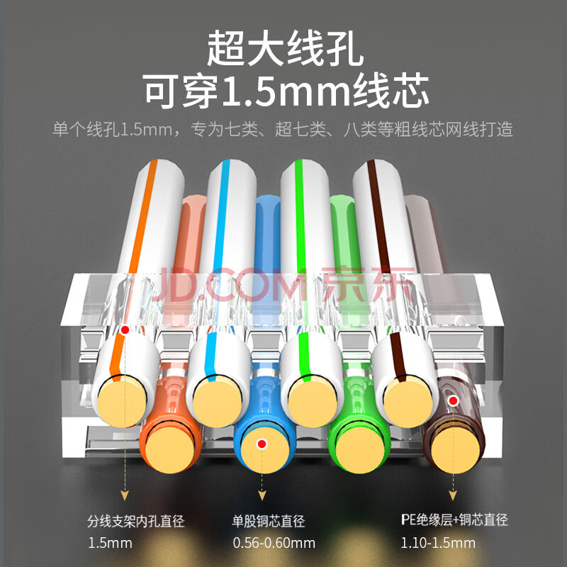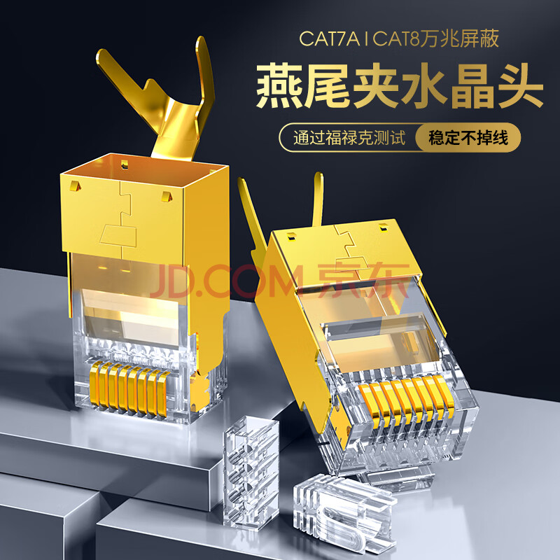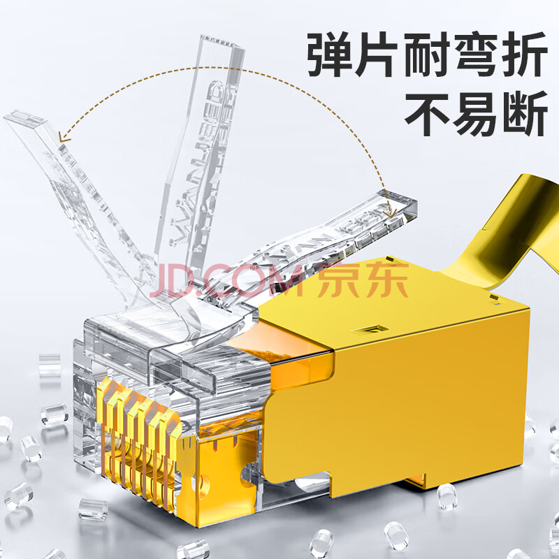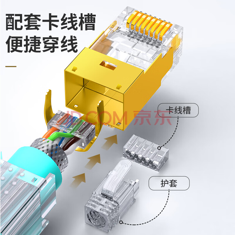 商品相册:万级八类万兆水晶头Cat8网线接头6个装 屏蔽RJ45水晶头保护套工程级网络连接器三件式WJ-15721第