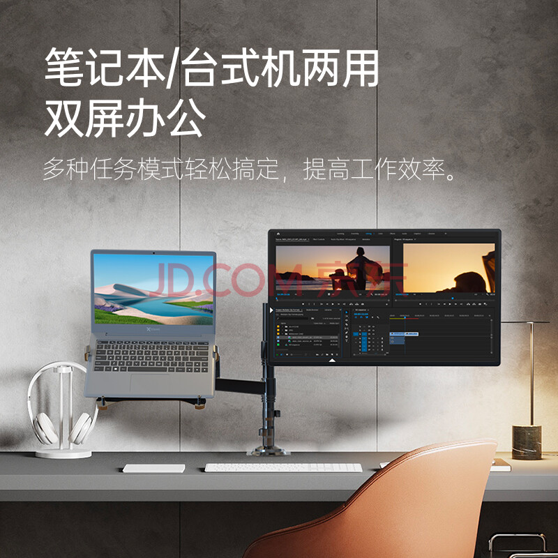 商品相册:NB显示器支架 机械臂 电脑支架桌面夹式底座免打孔屏幕升降悬空托增高架17-32吋适配科睿卓威第