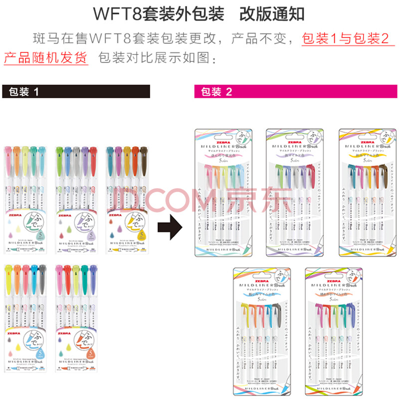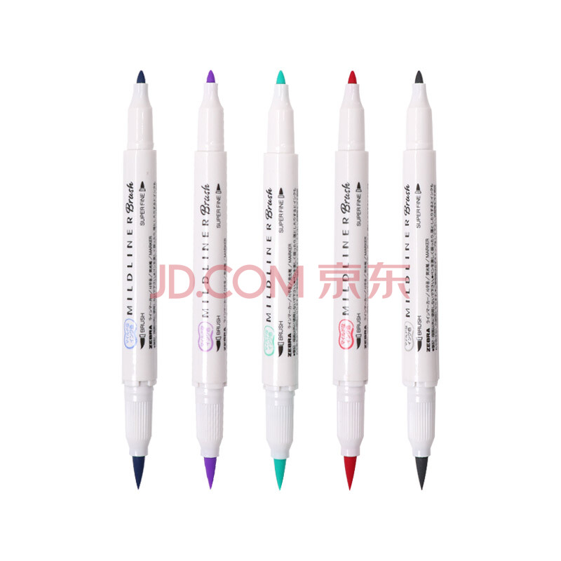 商品相册:斑马牌(ZEBRA)双头荧光笔 彩虹色手账笔 学生重点划线标记笔 WFT8 Brush淡雅系列 WFT8-5C-NC 5色套装第