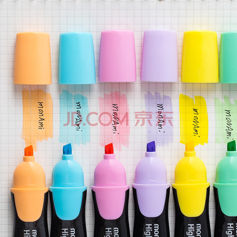 商品相册:【开学必备】慕那美(monami)荧光笔学生用方头重点标记笔记号笔手账笔 4色套装06020Z04第