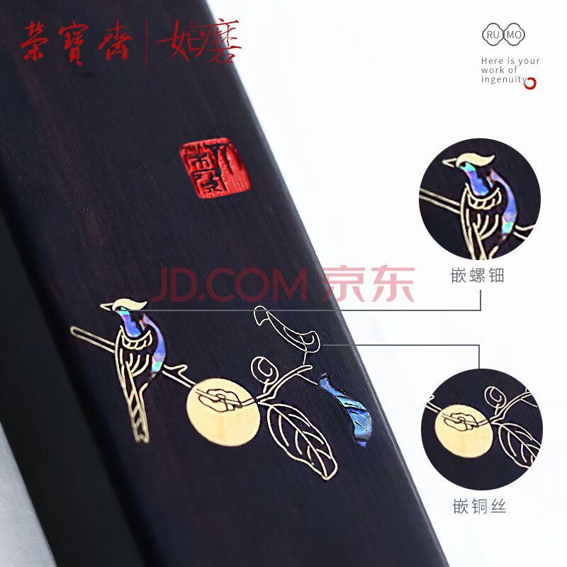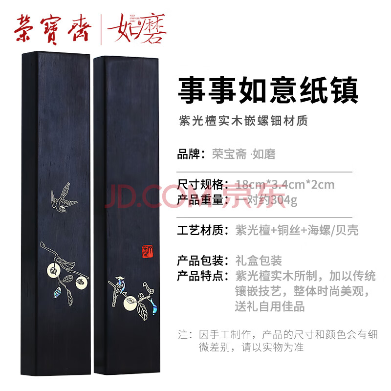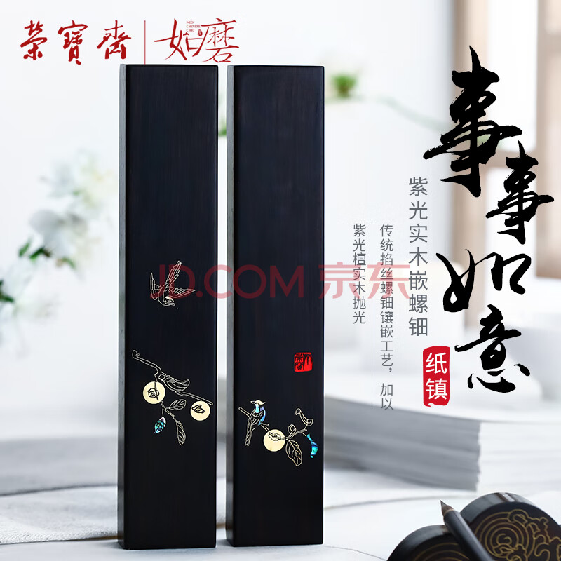商品相册:【全网低价】荣宝斋 镇尺 紫光檀实木掐丝螺钿古风镇纸 中式文房四宝学生毛笔书法绘画压纸 事事如意镇尺第