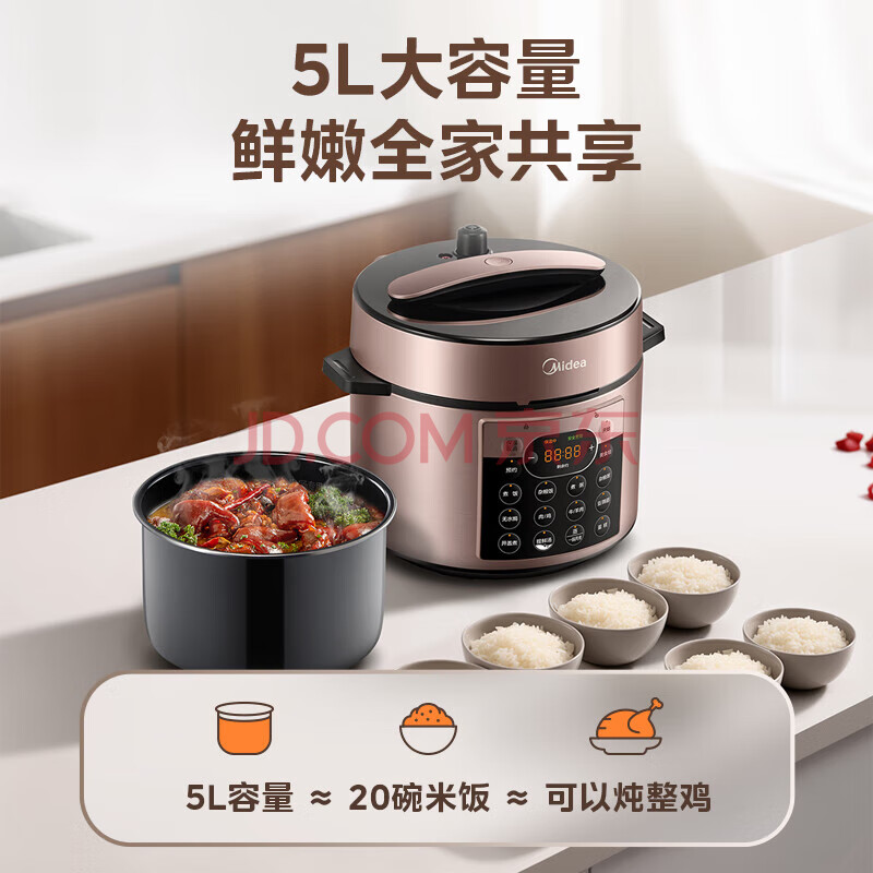 商品相册:美的(Midea) 电压力锅 一锅双胆智能预约多功能蒸煮煲汤易清洁高压锅电饭煲 YL50Q3-451【5L 提鲜系列】第