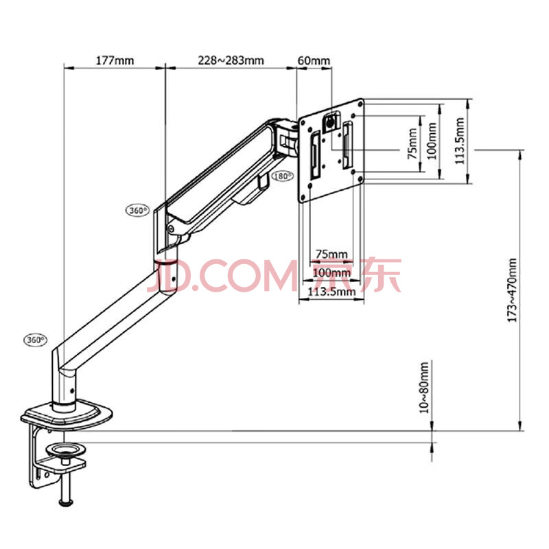 商品相册:AOC 黑色单臂SBX01显示器支架 自由悬停 360°旋转 10-32英寸电脑桌支架 屏幕支架 显示器增高架第