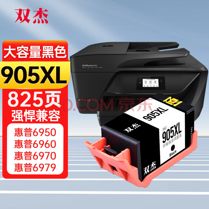 商品相册:双杰905墨盒 大容量黑色 适用惠普6960打印机墨盒 惠普6970墨盒 6950墨盒 惠普905XL墨盒第