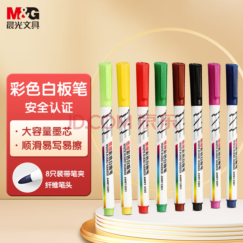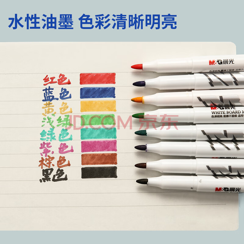 商品相册:晨光(M&G)文具8色彩色白板笔 儿童绘画涂鸦记号笔 易擦会议笔 8支装AWMY2301 考研第