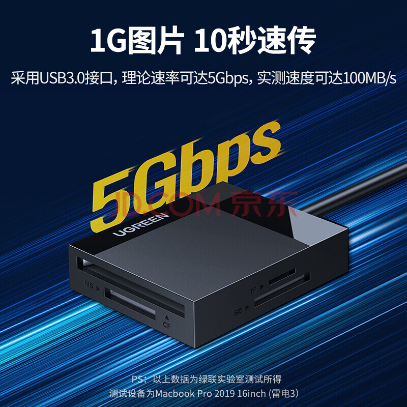 商品相册:绿联(UGREEN) USB3.0多功能读卡器 四合一多功能相机SD/TF/CF/MS内存卡读卡器 1米 30231 CR125第