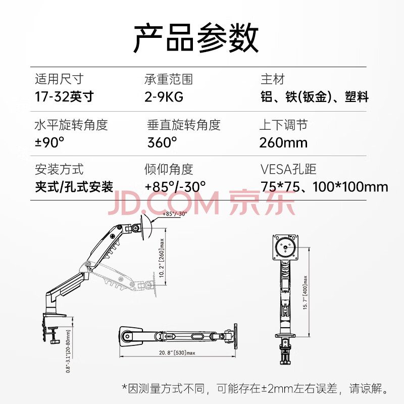 商品相册:NB显示器支架 机械臂 电脑支架桌面夹式底座免打孔屏幕升降悬空托增高架17-32吋 适配科睿卓威电竞第1张/共8