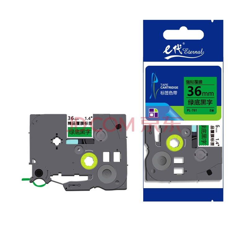 商品相册:e代标签带36mm绿底黑字TZe-761标签色带适用兄弟PT-900标签机E800TK打印机brother标签纸打印纸第