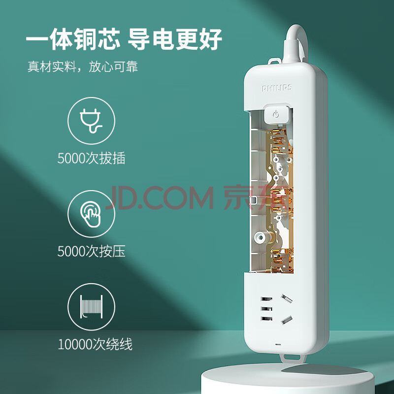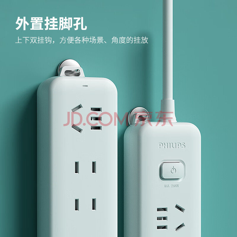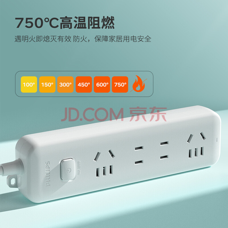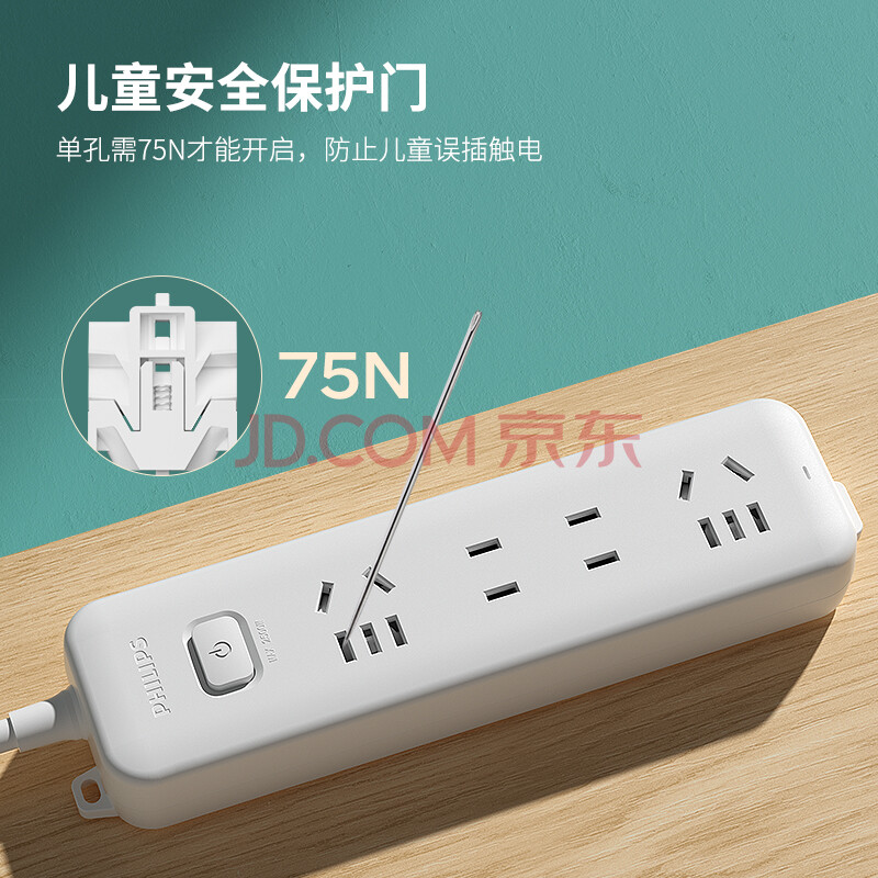 商品相册:飞利浦(PHILIPS)插座 4位组合孔 1.6米 儿童保护门 插线板/插排/排插/接线板/拖线板第