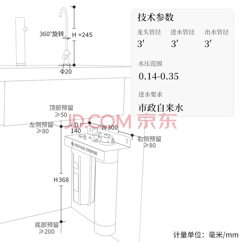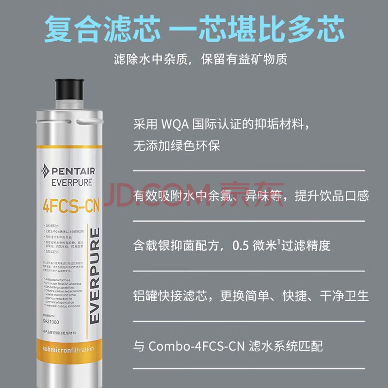商品相册:爱惠浦(Everpure)家用厨下直饮 长寿命滤芯 大流量0废水 4升/分钟 10000L额定净水量净水器4FCS-CN 第