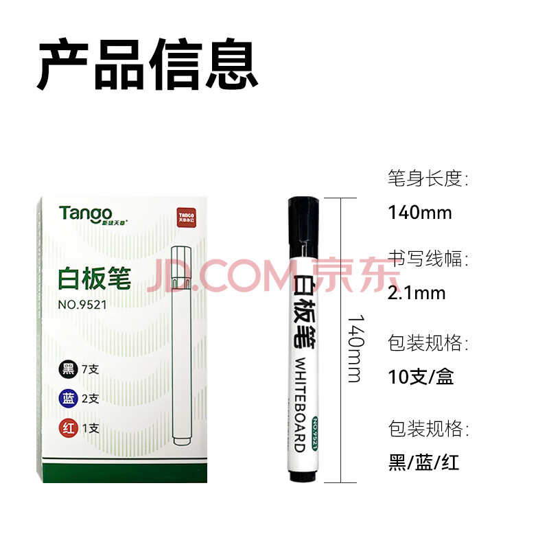 商品相册:天章 (TANGO)办公会议易擦白板笔10支组合装(7黑2红1蓝)办公文具耐磨耐用老师培训教学 9521第