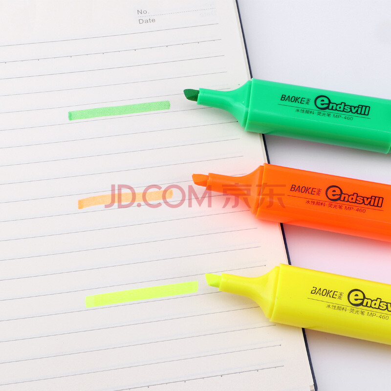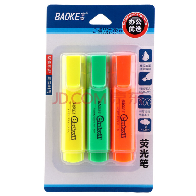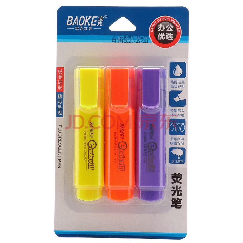 商品相册:宝克(BAOKE)【热门商品】3MP460 3色荧光笔重点标记笔 水性记号笔 颜色随机 1卡/3支第