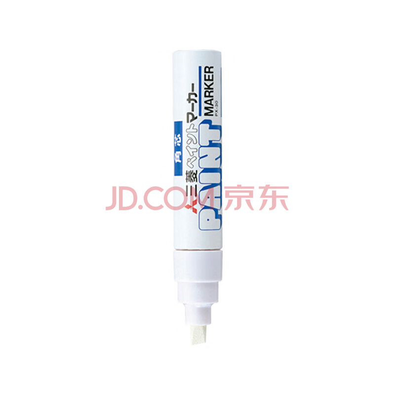 商品相册:uni三菱 油漆笔PX-30宽记号笔不掉漆斜头粗字油性笔(可用于汽车补漆) 4.0-8.5mm白色单支装第