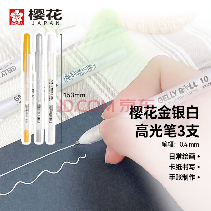 商品相册:樱花(SAKURA)(SAKURA)动彩笔金银白3支装 高光笔中性笔水性笔波晒宝珠签字笔【日本进口】第