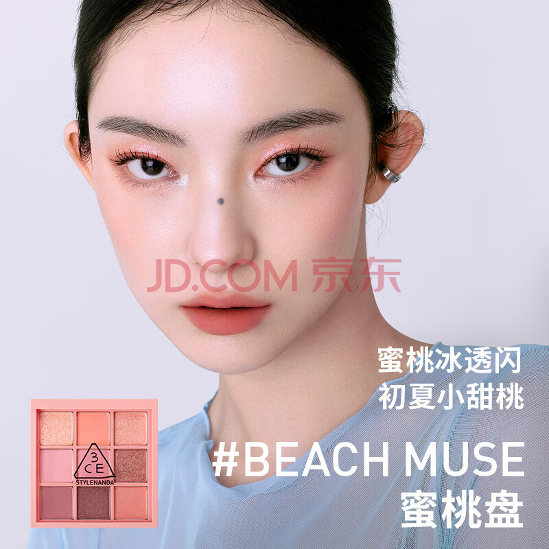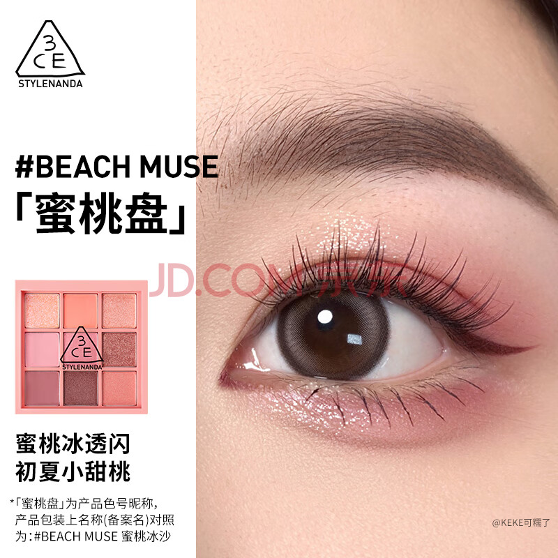 商品相册:3ce九宫格九色眼影盘蜜桃冰沙BEACHMUSE蜜桃盘哑光生日礼物送女友第