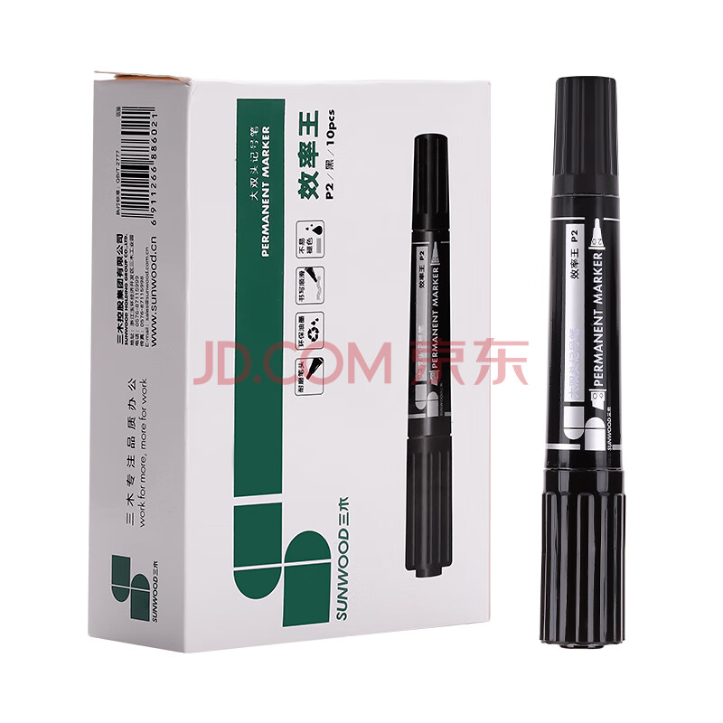 商品相册:三木(SUNWOOD)效率王系列 10支装黑色 大双头油性记号笔 物流绘画速干型记号笔 P2第