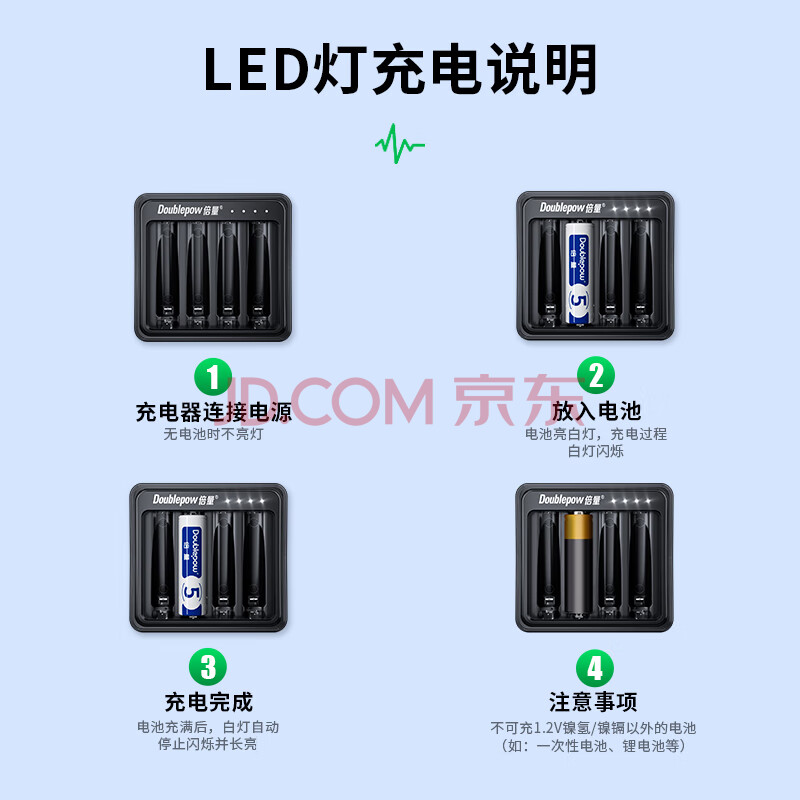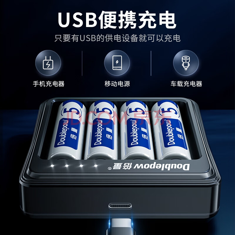 商品相册:倍量(Doublepow)7号电池1000毫安时4节七号充电电池智能充电器套装适用于玩具遥控鼠标键盘等第