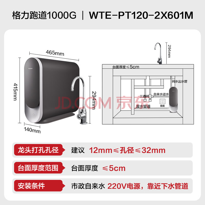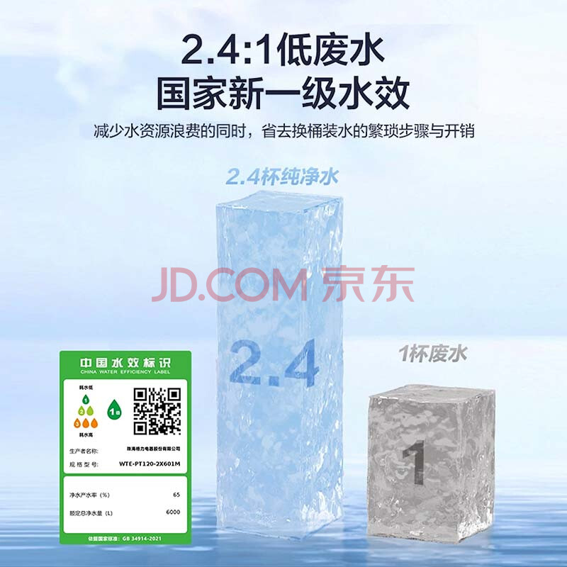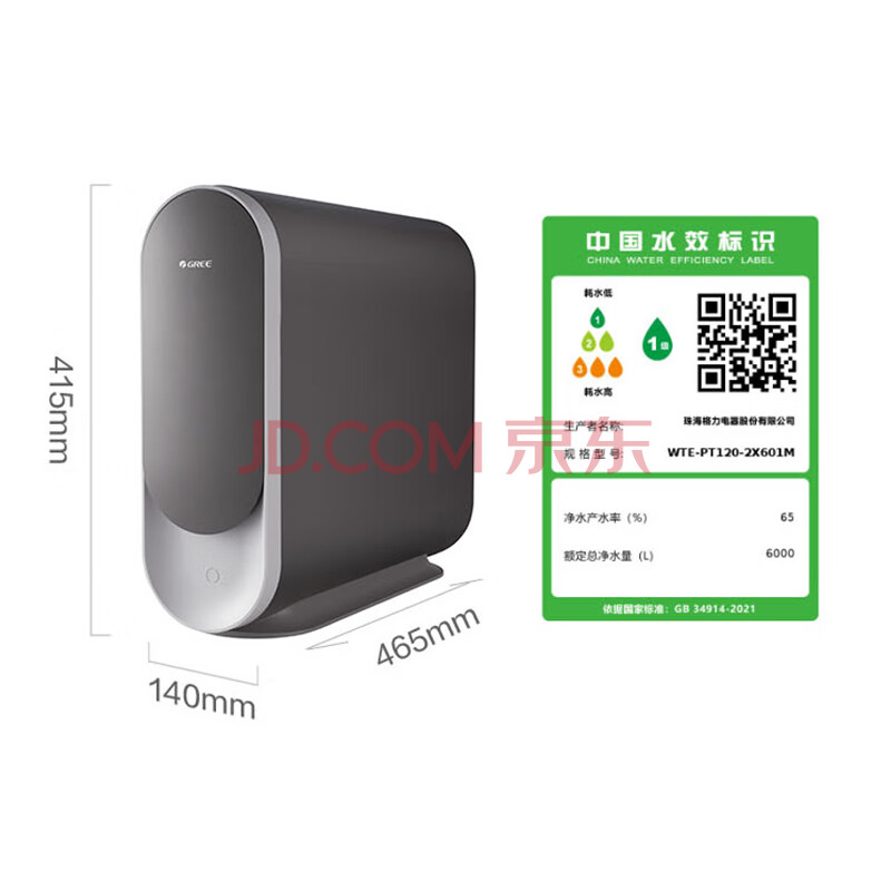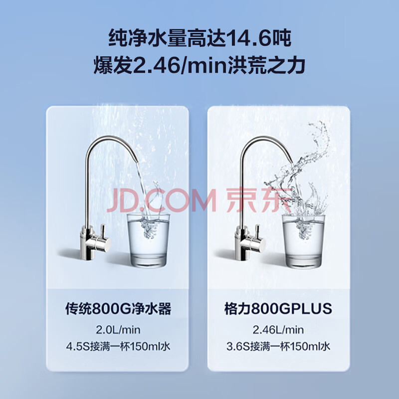 商品相册:格力(GREE)净水器家用净水器厨房专用台下用1000G0阻垢剂直饮水机五年长效RO膜2.5L/min一级水效2X601M第